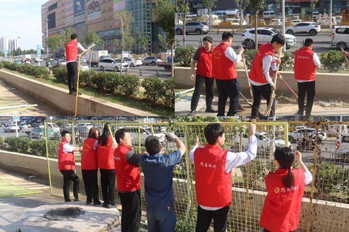 9月24日,新商城運(yùn)營(yíng)公司黨支部組織開(kāi)展“環(huán)境衛(wèi)生整治”主題黨日活動(dòng),弘揚(yáng)“奉獻(xiàn)、友愛(ài)、互助、進(jìn)步”的志愿精神?;顒?dòng)中,黨員志愿者身著紅馬甲,協(xié)作拆除商城外圍陳舊圍擋,清理地面雜草垃圾,并拿起水管,給周邊綠化帶中的植物澆水,草叢在灌溉下愈顯生機(jī)。