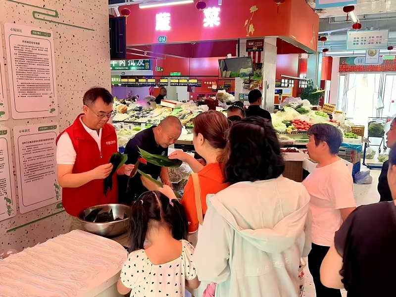 在市投集市未來路農(nóng)貿(mào)市場(chǎng),市場(chǎng)組織的“粽情端午,樂購(gòu)市投”活動(dòng),吸引了眾多周邊社區(qū)居民熱情參與,大家共聚一堂,包粽子、品美食、享優(yōu)惠,在歡聲笑語中感受傳統(tǒng)節(jié)日的魅力。
